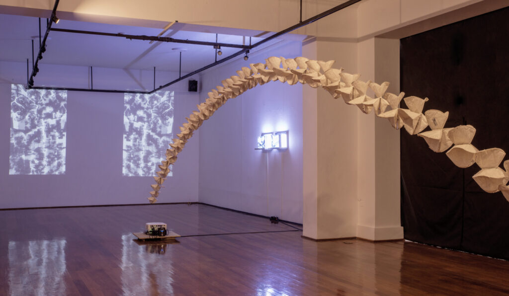 Ésta no pretende ser una exposición científica, pero sí una basada en reflexiones originadas a partir del conocimiento científico o académico. Por ello, se adjuntan los pasajes de filosofía ecológica que inspiraron las piezas. Pues es solo con información que podemos conjurar a los fantasmas. Y este fantasma, aunque real y apremiante, necesita ser conjurado. Es nuestra única alternativa.