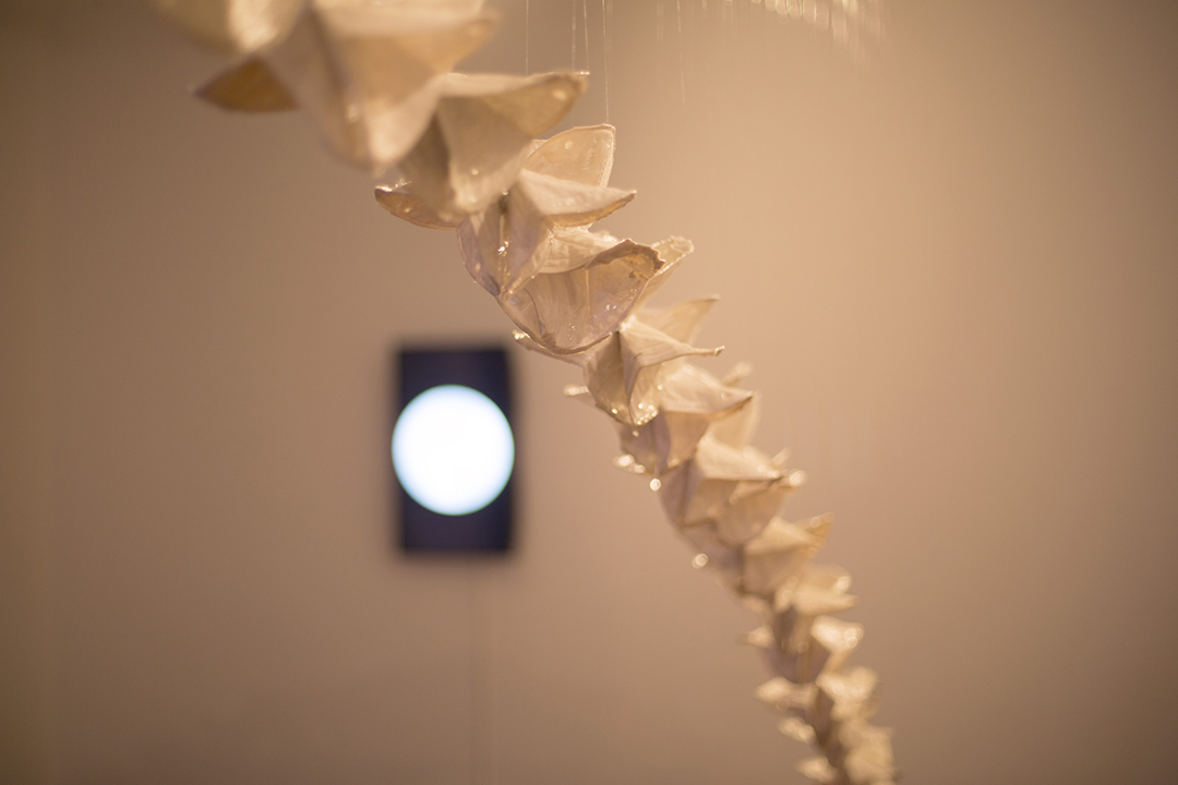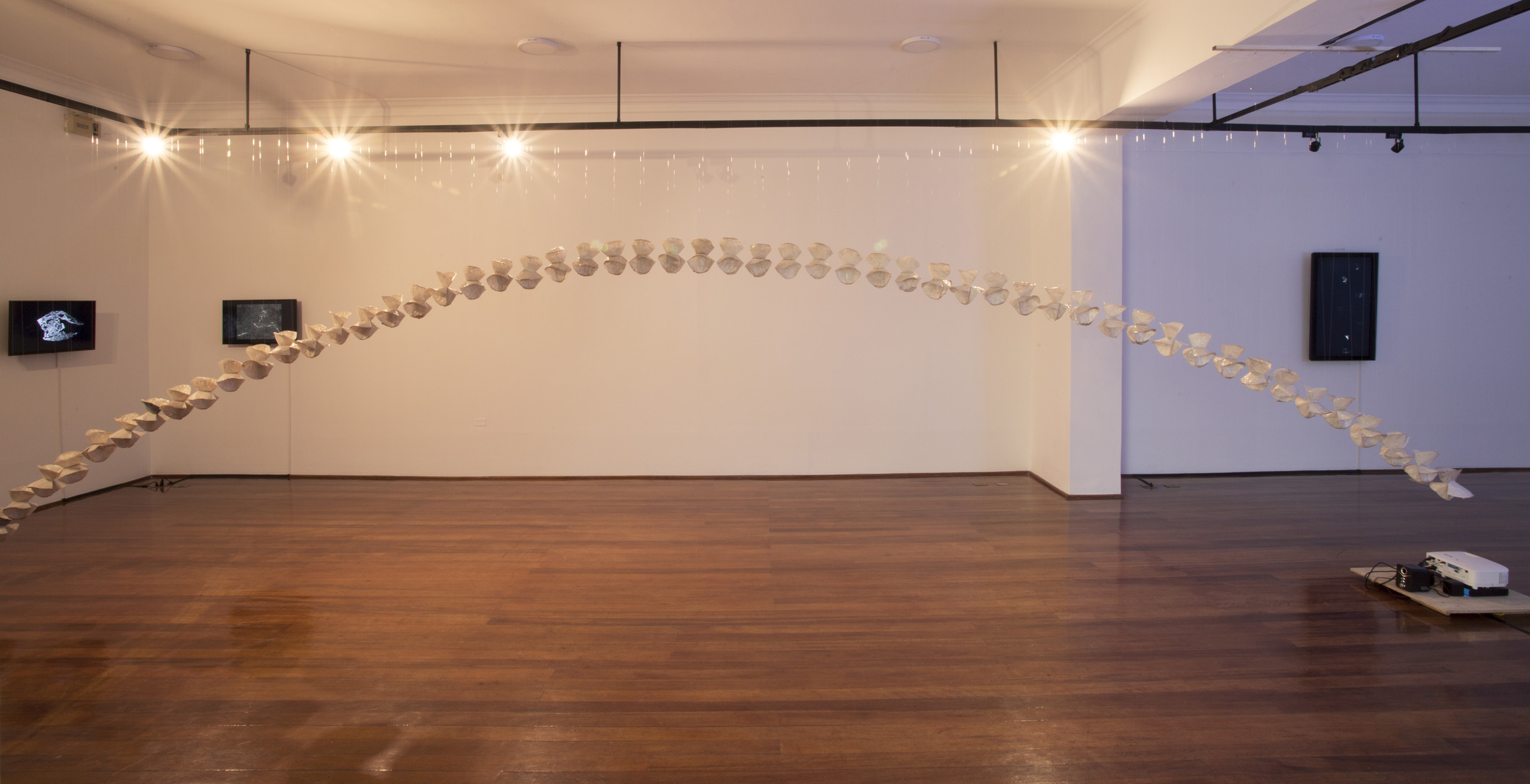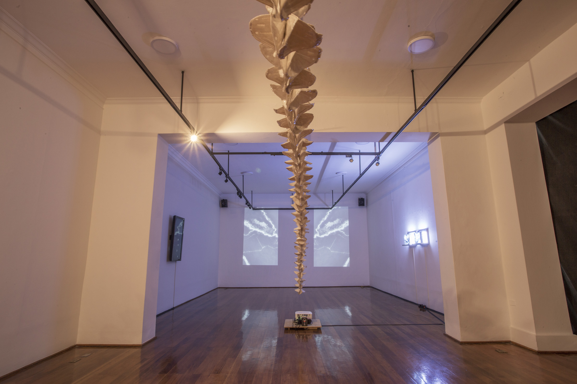 Ésta no pretende ser una exposición científica, pero sí una basada en reflexiones originadas a partir del conocimiento científico o académico. Por ello, se adjuntan los pasajes de filosofía ecológica que inspiraron las piezas. Pues es solo con información que podemos conjurar a los fantasmas. Y este fantasma, aunque real y apremiante, necesita ser conjurado. Es nuestra única alternativa.