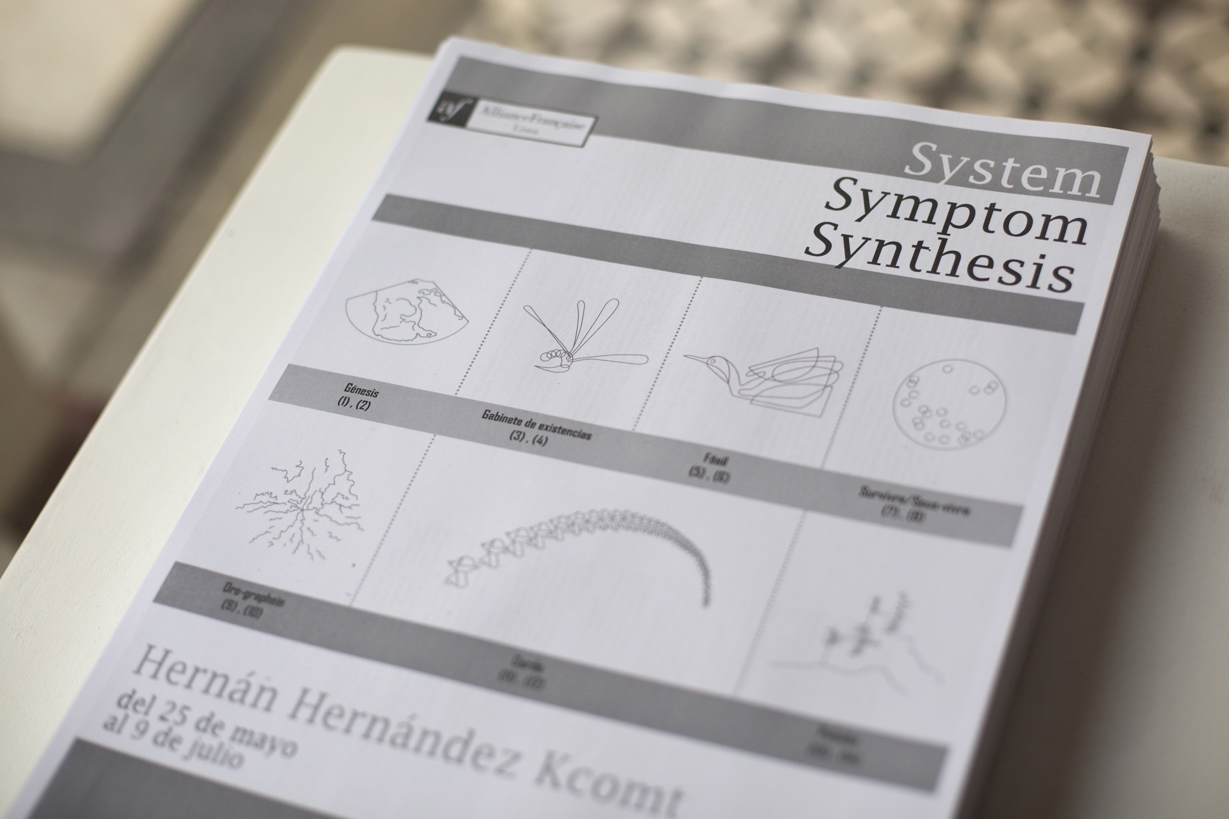 Por ello, /System/ Symptom/ Synthesis/ busca ser un comentario (o mejor, un diálogo) acerca de conceptos útiles para complejizar estos procesos. Desde la concepción del mundo como una teleología del dominio del Hombre en el video de Génesis hasta la preponderancia del valor fiduciario inmanente al derrame de Repsol en Fósil. Desde el estudio animal presente en las ciencias que influyeron en el desarrollo de la técnica de registro visual con Muybridge en Gabinete de existencias, hasta la comprensión de que vamos regresando todos, humanos y no-humanos hacia un mismo ritmo tanático en Pulsión. Esta presencia inminente de la muerte se encuentra también en una animación que utiliza capturas de Google Earth sobre nuestras Amazonia, Oro-graphein, y en Corda, instalación que busca cuestionar el papel del individualismo en la subsistencia de nuestra especie. Por último, en Survivre/Sous-vivre se pone de manifiesto el inevitable conflicto de la supervivencia humana con el mundo.